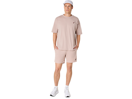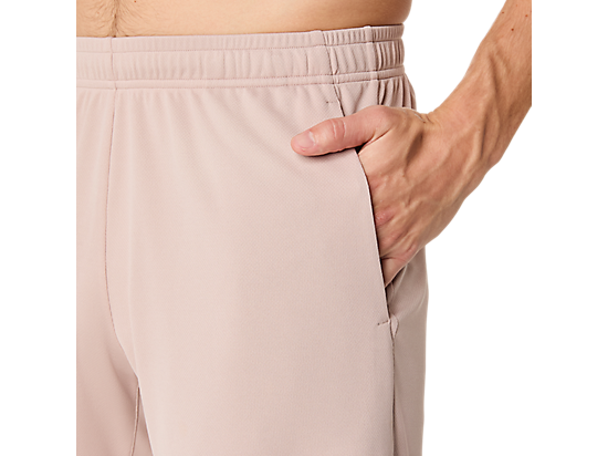 The short is constructed with a 2-way stretch knit fabric for added flexibility and includes functional details like side slits for mobility and side pockets for storage. An adjustable drawcord at the waist offers a personalized fit.